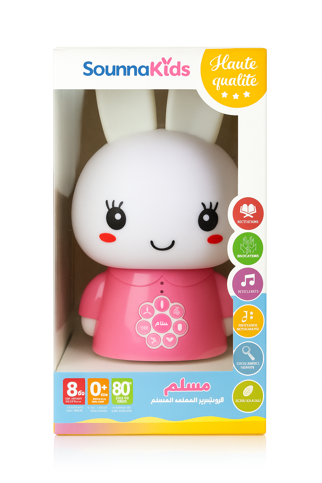 Les premières années forgent le cœur et l’esprit. Avec SounnaKids Luna, votre enfant associe dès le plus jeune âge sérénité, amour et apprentissage du Coran. Une manière simple et apaisante de transmettre les valeurs de l’Islam au quotidien, sans effort et avec tendresse.